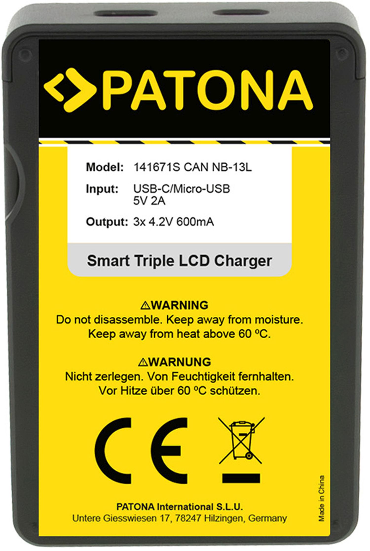 PATONA Chargeur USB Smart Dual LCD pour Canon NB-13L