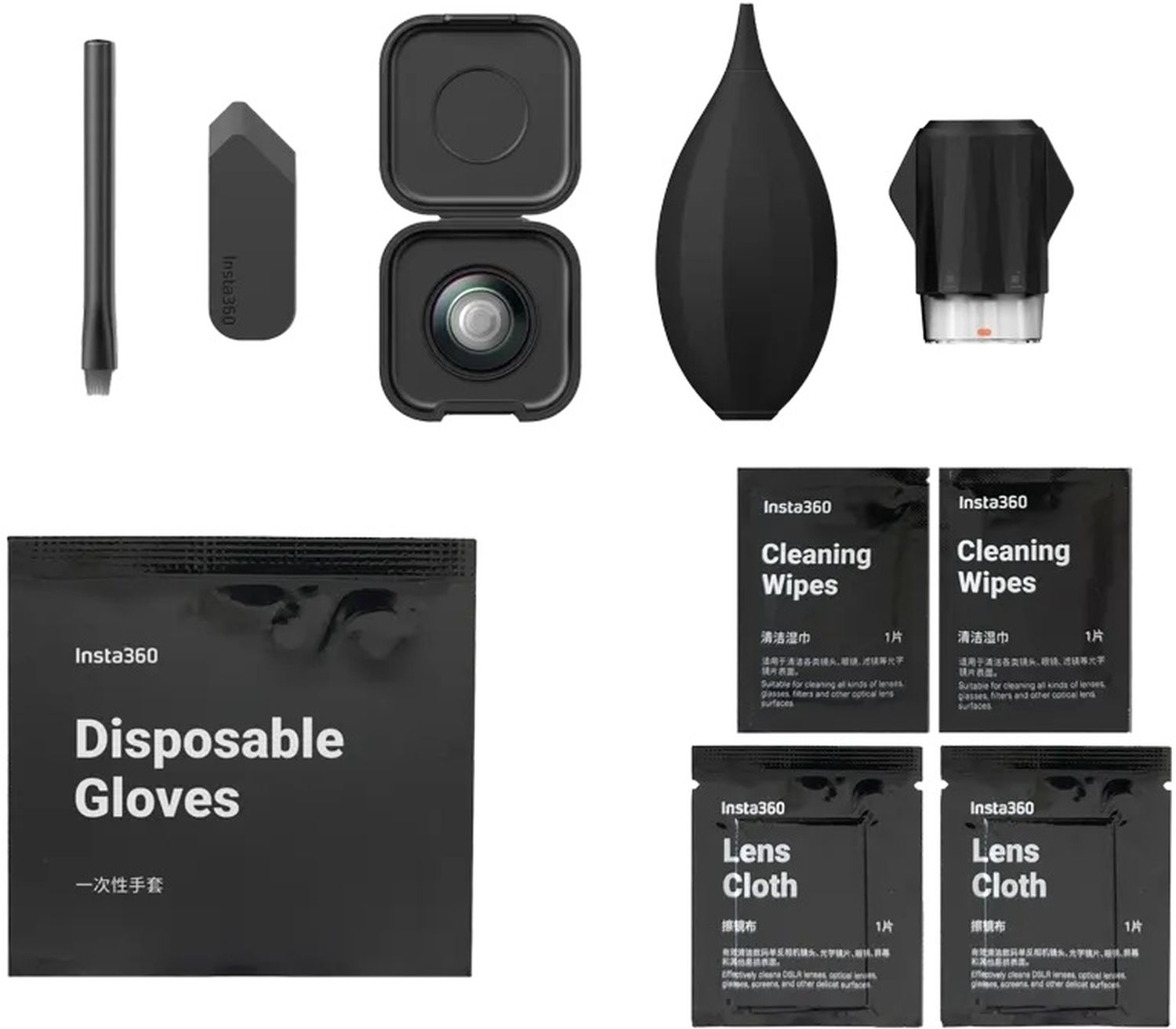 - Kit pratique pour retirer et remplacer facilement les lentilles extérieures de l'Insta360 X5 en déplacement.