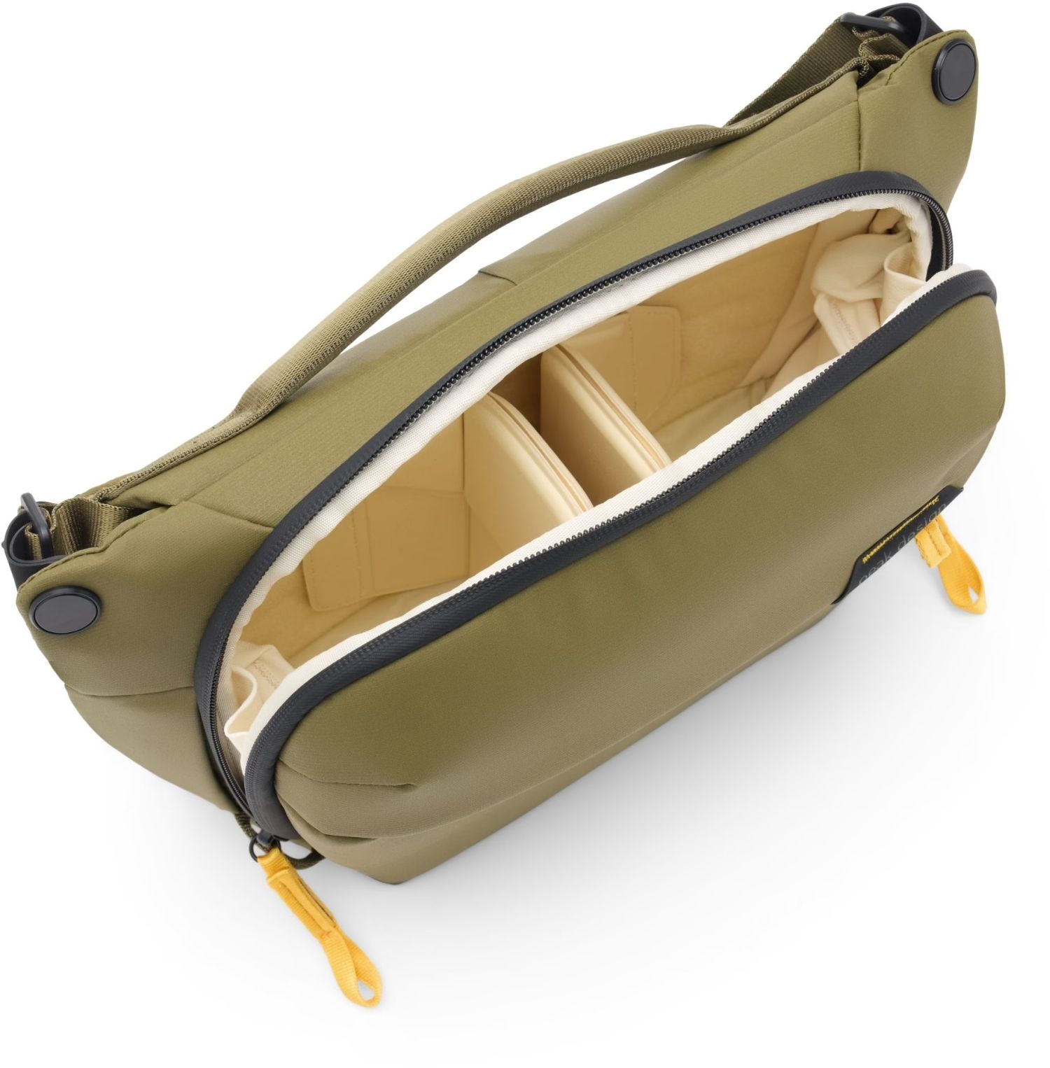 Presque une marque de fabrique de Peak Design : contrairement aux autres sacs, les Everydays peuvent être compartimentés et adaptés de manière encore plus flexible. L'astuce derrière tout cela : les séparateurs FlexFold ! Les développeurs de Peak Design ont inspiré ce concept des techniques japonaises d'origami. Avec ce design innovant composé de deux couches de tissu, le monopièce n'est pas seulement simplement pliable, mais aussi doublement dépliable : une couche du diviseur peut être rabattue, tandis que l'autre reste dépliée. Tu obtiens ainsi une sorte d'étagère avec un plateau intermédiaire. Le monobloc peut soutenir un long objectif et en même temps séparer deux objectifs empilés l'un sur l'autre. Il en résulte une multitude de possibilités de rangement, ce qui rend l'Everyday Sling étonnamment spacieux malgré ses dimensions compactes.