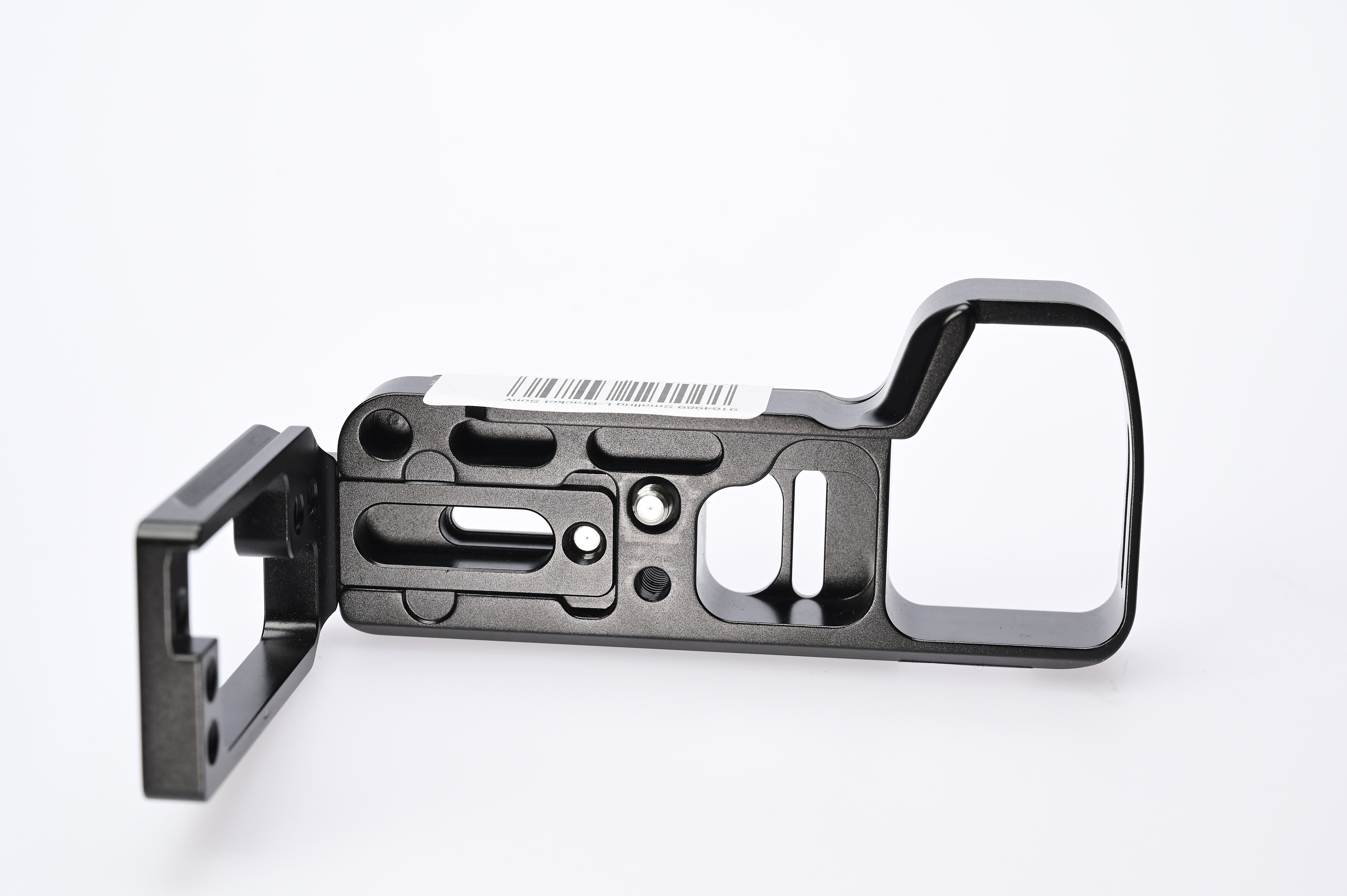 La fixation en L dispose de plusieurs points de filetage 1/4″ et 3/8″ pour le montage d'autres accessoires comme un microphone, une lumière LED, un bras d'écran ou une poignée. L'ajustement précis préserve le boîtier de l'appareil photo et garantit que toutes les connexions, les trappes du compartiment à piles et de la carte mémoire restent librement accessibles. L'aluminium anodisé de haute qualité garantit une grande stabilité pour un faible poids.